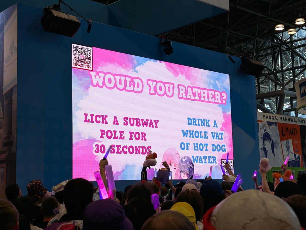 Como sempre, a convenção está muito concentrada em seu Salão de Exposições e em seus eventos. Existem muitos painéis apresentando insights do setor e anúncios de planos futuros, mas eles tendem a ser mais voltados para a promoção, com algumas joias menos focadas nos negócios aqui e ali. Para mim, como o Anime NYC se tornou um grande evento para VTubers, me vi dedicando mais atenção nessa direção.