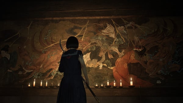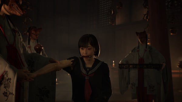 Falando dos quais, um aspecto de Silent Hill f que eu acho que o consolida como uma entrada verdadeiramente exemplar nesta série é a maneira como Ryukishi07 e NeoBards Entertainment criaram uma experiência que literalmente exige ser descompactada em várias jogadas. Os jogadores familiarizados com os romances visuais Higurashi e Umineko de Ryukishi07 provavelmente não ficarão surpresos ao saber disso, mas é uma informação vital para quem está acostumado com os diferentes finais de Silent Hill, sendo cenas simples que oferecem uma conclusão alternativa para um enredo ambíguo. As novas execuções do Game Plus não permitem apenas que você carregue suas habilidades atualizadas e recursos economizados. Você pode esperar cenas inteiramente novas, missões secundárias e revelações revolucionárias ao longo de toda a campanha. Não creio que seja um eufemismo dizer que jogar Silent Hill várias vezes é fundamental para vivenciar tudo o que este jogo tenta transmitir com a jornada sombria e cansativa de Hinako através da neblina.