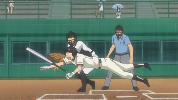 “Assim que baixarmos a guarda, eles nos comerão instantaneamente!” Momoe enfatiza uma das verdades fundamentais do beisebol – os jogos são disputados e com poucas pontuações até que de repente deixam de ser, quando um arremessador ultrapassa sua habilidade e as corridas começam a se acumular. Outra razão pela qual é um esporte estranho para o espectador, já que a maior parte da disputa por posição que compõe as idas e vindas significativas do jogo não está realmente representada no placar