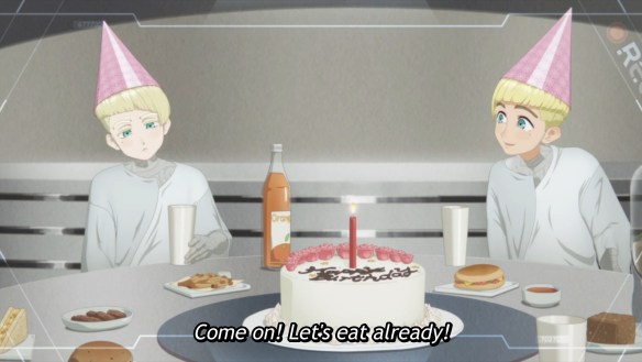 Abrimos com um aparente flashback do tempo dos gêmeos a bordo da nave de arco, com nosso zelador invisível declarando que este é seu “primeiro aniversário” enquanto capturava a cena com uma câmera de vídeo. Já vemos a tensão em jogo nesta domesticidade fictícia; os meninos já parecem ter talvez nove anos de idade cada um e, apesar da tentativa do zelador de inserir leviandade na situação, toda a cena parece desconfortavelmente estéril e contida. Esses meninos não se encaixam em seu mundo, e seu próprio mundo parece indiferente ao calor humano