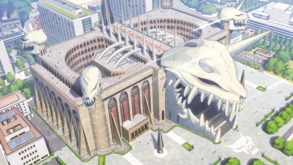 Onimaru fez uma remodelação verdadeiramente inspirada no edifício da dieta, equipando-o com crânios de feras gigantes e uma caixa torácica esquelética de contrafortes. Eu aprecio o quanto estamos nos inclinando para esse contraste absurdo entre a estética yokai e a sociedade moderna