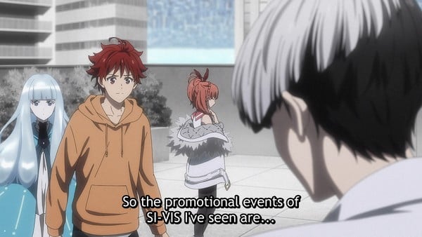 É uma das razões pelas quais costumo ficar de olho nesse gênero, no quanto ainda estou perseguindo o dragão de experimentar algo com o glorioso absurdo de Symphogear novamente. Não somos todos? A boa notícia é que existem vários animes contemporâneos que disputam pelo menos um pouquinho dessa grandeza. O mencionado SI-VIS, por exemplo, parece uma interseção da trama do Symphogear com a estética moderna de grupos ídolos.