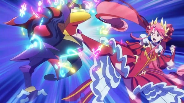 É engraçado que o O gorila com babados de 800 libras na sala aparentemente só agora decidiu tentar competir diretamente com a estética do Pretty Rhythm, em You and Idol Precure♪.