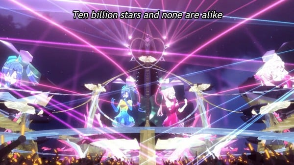 Trazer à tona alusões a Utena serve apenas para me lembrar que Revue Starlight também se encaixa no perfil de shows mágicos de ídolos musicais. Ainda assim, vou poupar isso de novo, para não começar a repetir o refrão da nossa coluna de musicais do início deste ano.