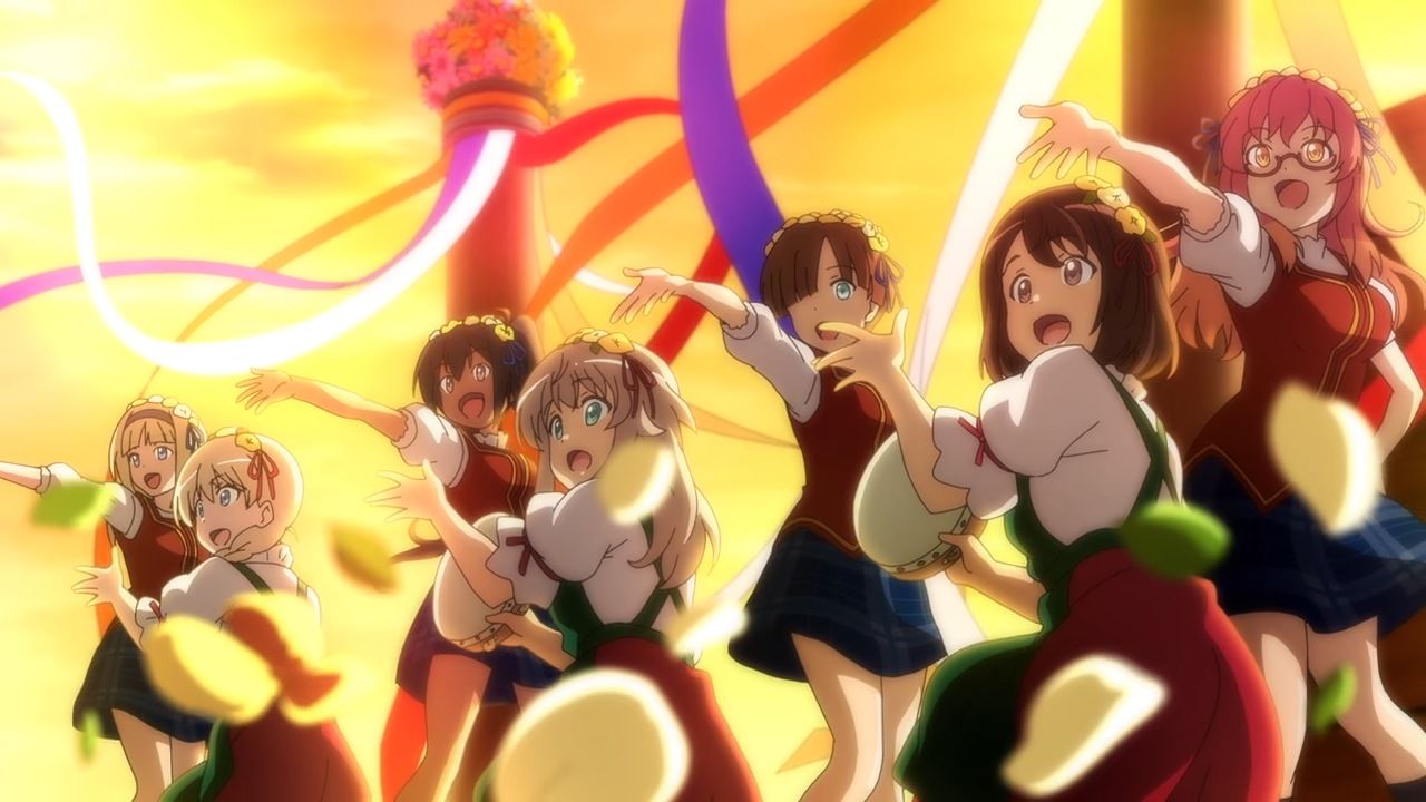 E com isso, o 72º Joint Fighter Wing ou devo dizer Luminous Witches divertiram a vila inteira com sua música incrível e acrobacias acrobáticas.