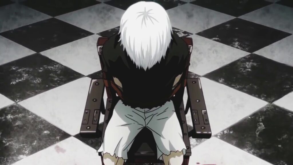 A história de Tóquio O anime Ghoul gira em torno do estudante Ken Kaneki, que se apaixona por uma jovem chamada Rize Kamishiro. Depois de conhecê-la, ela morde o ombro dele em um beco isolado e revela que ela é um ghoul, o que choca Ken. um prédio. Roze morre no processo, enquanto Ken é levado às pressas para o hospital com ferimentos com risco de vida. Após se recuperar, ele é liberado do hospital. No dia de sua libertação, ele descobre que não é mais humano. Ele se olha no espelho e arrepios percorrem sua espinha porque agora ele tem um “olho vermelho”. Ele percebe que os órgãos de Rize foram transplantados para ele no hospital. Como ele agora possui os órgãos de Rize, ele é chamado e muito raramente ocorre”meio-ghoul”.