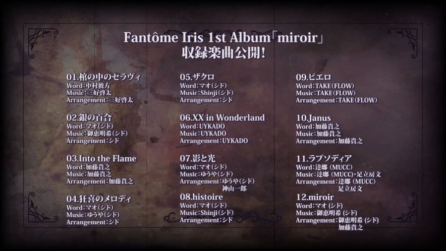 Também foi anunciado que o projeto está sendo lançado três novos álbuns para Fantôme Iris, Fujin Rizing e εpsilonΦ no próximo mês.