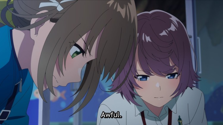 E Aquatope mesmo é mofado. Não só o assunto é meio deprimente, mas também passamos muito tempo assistindo Kukuru ou Fuka ficarem deprimidos com alguma coisa. Às vezes os dois ao mesmo tempo, mas raramente. Eles se revezam normalmente!