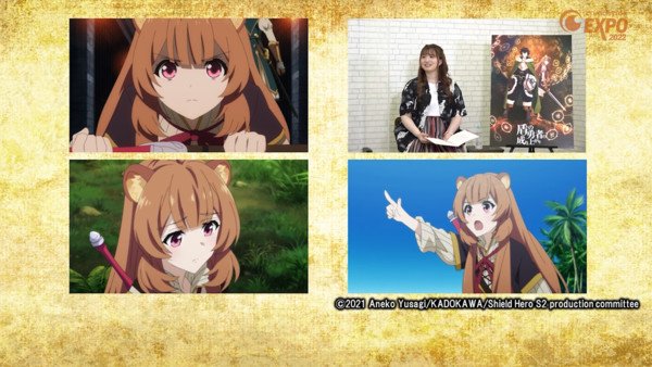 Após o término de sua segunda temporada há apenas alguns meses, a Crunchyroll Expo realizou um painel de mesa redonda”Conversa com os criadores”refletindo sobre The Rising of The Shield Herói. Apresentado por Sarah Emi Bridcutt, a voz de Myne, o segmento reuniu membros da equipe Keigo Koyanagi (composição da série e roteirista), Masahiro Suwa (designer de personagens), Kōsuke Arai (produtor da 2ª temporada) e Takeshi Takakura (líder de design). Um VOD do painel está disponível no site da Crunchyroll Expo até 9 de agosto, mas vale a pena notar que a transmissão está passando por dificuldades a partir de agora, com a transmissão cortando intermitentemente e precisando ser atualizada.
