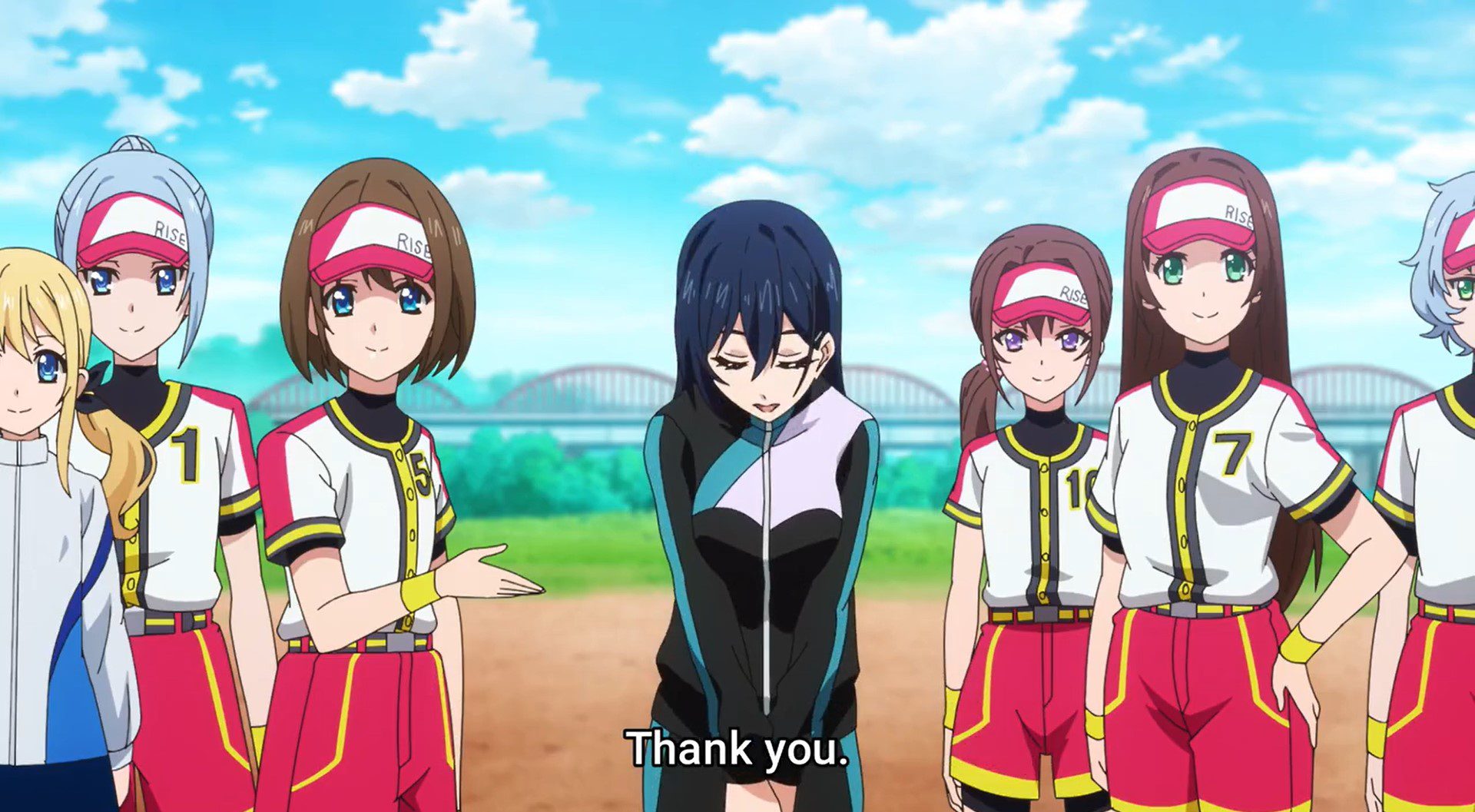 Yukino se enquadra em um arquétipo surpreendentemente razoável e saudável. Rise precisa trazer mais algumas pessoas. Ainda bem que eles estão planejando adicionar mais um neste episódio. Tachibana só veio ver as meninas treinarem e já estava segurando um taco e um capacete dois segundos depois de chegar.
