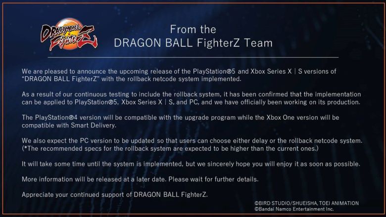 Por fim, a Bandai Namco afirmou que os clientes que atualmente possuem Dragon Ball FighterZ não teriam que pagar mais por esta edição atualizada. Quando o DBFZ for lançado nesses consoles de última geração, aqueles que já o compraram no PS4 ou Xbox One basicamente poderão atualizar o jogo gratuitamente.