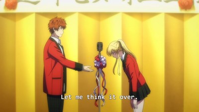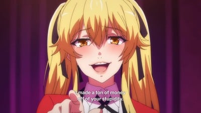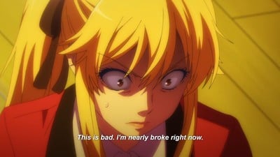 Eu , no meio do Episódio Um:”Hmmm, eu me pergunto se esta série realmente vai levar adiante a energia particular que eu espero da franquia Kakegurui-“