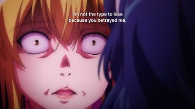 Parte de mim gosta do truque de entrar na teoria e estratégia por trás de um jogo superficialmente baseado em sorte. Mas quando isso acaba sendo basicamente o único truque que o programa tem em sua breve execução, ele se esgota rapidamente. Este foi facilmente o destaque para mim também. Ver o gêmeo Kakegurui torcer o formato do game show de namoro em algo ainda mais transacional foi bom demais. Ele também fornece a melhor base para os intensos jogos mentais pelos quais a série é conhecida. Notas altas ao redor. Ainda mais do que o resto da série, este arco está cheio de pequenos momentos de personagens eficazes como esse. Alguns são da variedade mais dramática, como aquela breve provocação de que Tsuzura pode ter traído Mary. Mas mesmo as partes idiossincráticas mais patetas são sobre como configurar o quão sincronizado o trio principal se tornou, a ponto de poderem se comunicar com piadas internas.
