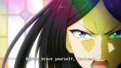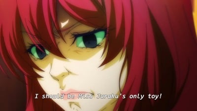 Deus, e o jeito que ela rosna ao lado de Juraku como um cachorro de verdade na coleira é o melhor. E eu não posso acreditar que quase esqueci de mencionar, ela é dublada por Aoi Koga, também conhecida como Kaguya-sama de Kaguya-sama. Sempre que sua voz esgana uma oitava inteira, é uma oferta inoperante. Acho que foi nesse arco que eu finalmente notei isso, e uma vez que notei, não pude deixar de notar.