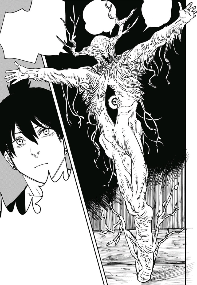Aki entra na sala do Demônio do Futuro e vê sua aparência completa enquanto anuncia repetidamente que o futuro é o melhor. Aki e o Diabo do Futuro conversam, e o Diabo do Futuro não gosta ou aprova sua atitude. Ele então diz a Aki para enfiar a cabeça na barriga para que ele possa ver seu futuro e o usa para determinar os detalhes de seu contrato. Depois de rir do futuro de Aki porque isso o diverte, o Diabo do Futuro faz a oferta de que, enquanto ele puder viver no olho direito de Aki, ele o ajudará.