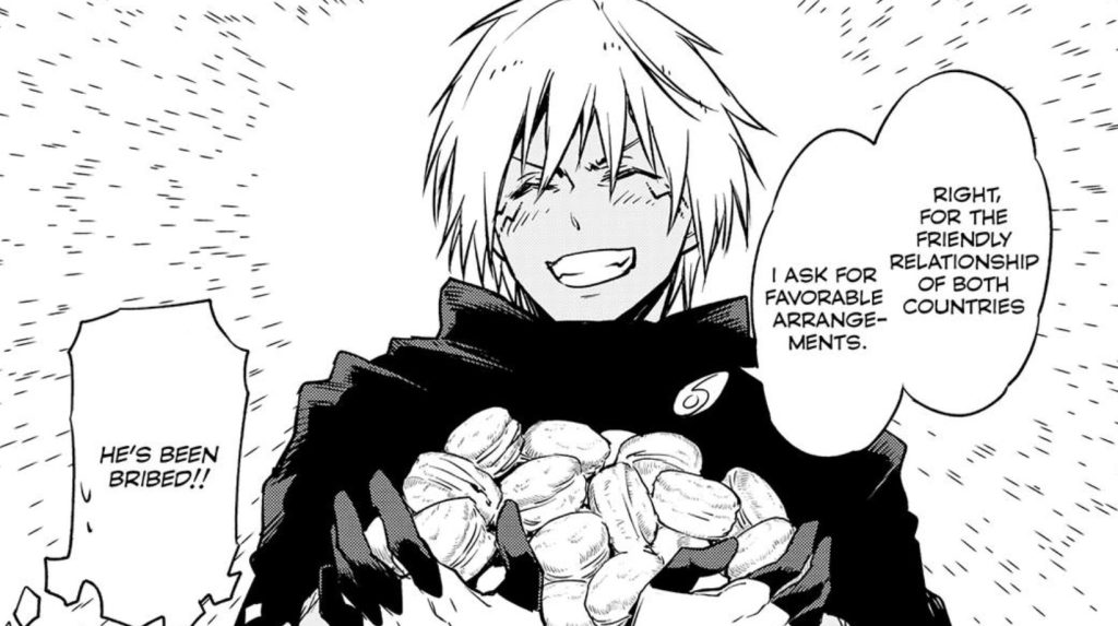 Rimuru tinha sugeriu que eles contassem a história de um sorteio na frente de Hinata. Ou então eles também poderiam dizer que Rimuru havia perdido a batalha. Mas o resto dos cavaleiros não concordava em contar uma mentira. No último ato do capítulo anterior, todos concordaram em ouvir Rimuru. Mas Hinata disse que uma decisão não seria suficiente. Eles teriam que trabalhar todos os dias para construir um entendimento mútuo.
