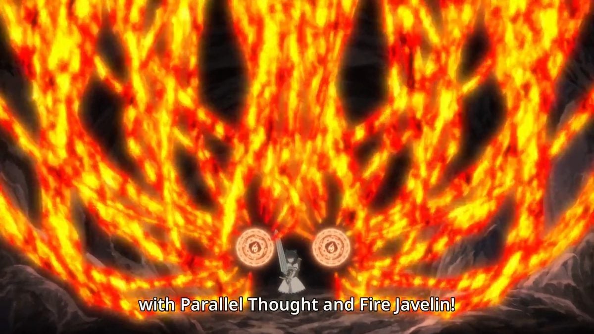 Como o último episódio termina com um cliffhanger, temos certeza de ver Fran, o demônio que ela estava lutando e sua espada, professor. Havia também outro goblin de baixo escalão que estava tentando controlar o demônio apenas para falhar. Fora da porta da masmorra, os membros da guilda estavam tentando entrar na câmara, então podemos vê-los também.