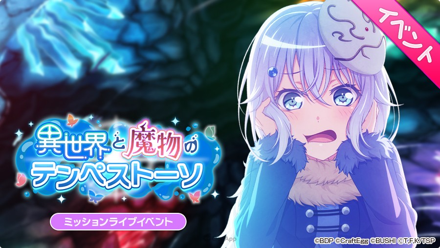 Novas missões estão chegando ao jogo, junto com uma história de evento relacionada à história de Tensura! Jogue a história de colaboração para descobrir o que acontece quando as meninas do BanG Dream também são levadas a um momento em que reencarnam como um lodo!