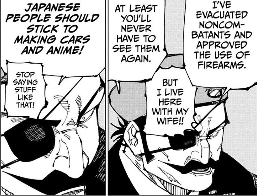 Ele conseguiu manipular o presidente, que declarou que esta operação seria feita para proteger seu povo de outros países. Isso poderia atingir os feiticeiros. Kenjaku aceitou a declaração do presidente. Uraume ouviu a conversa deles. Kenjaku então revelou que os feiticeiros eram uma minoria. Para que eles pudessem coletar espécimes em novembro. Kenjaku mais tarde se apresentou como Suguru Geto aos funcionários da Casa Branca. O presidente ordenou que seus bairros japoneses fossem fortemente patrulhados para proteger seus cidadãos nipo-americanos.