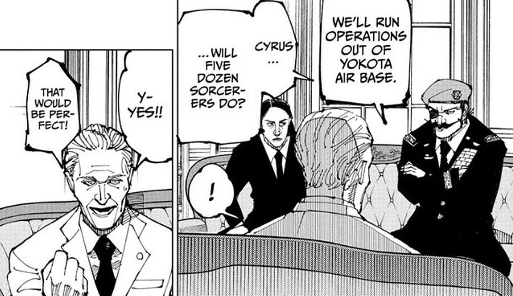 No capítulo 201 de Jujutsu Kaisen, Cyrus Veil conseguiu explicar a importância da energia amaldiçoada. E também usá-lo como fonte alternativa de energia. Ele enfatizou que se um único feiticeiro pudesse produzir energia suficiente para durar uma vida inteira, imagine o que outros feiticeiros poderiam fazer. Isso ocorreu porque seus cérebros estavam conectados de maneira diferente. Mas a ideia de fazer experimentos em humanos horrorizou o presidente. No entanto, Cyrus continuou a reclamar que outros países estavam se esforçando para tirar vantagem de seu país Japão.