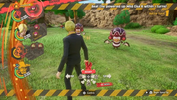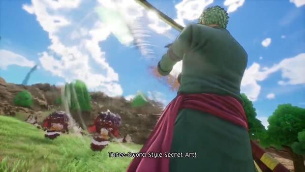 Mas Bandai Namco também estava preocupado em manter o jogo atualizado para os jogadores, então muitas mecânicas mudam o rumo da batalha. Alguns ataques normais podem derrubar inimigos uns contra os outros, causando dano extra a grupos inteiros. Existe um sistema pedra-papel-tesoura envolvendo personagens do tipo Power, Technique e Speed, no qual você pode causar dano adicional a monstros por meio de ataques de personagens específicos. Então Zoro, sendo um tipo de técnica, pode causar dano extra a personagens do tipo Power. Isso incentiva os jogadores a trocar constantemente os membros do grupo para maximizar o dano contra as multidões inimigas.