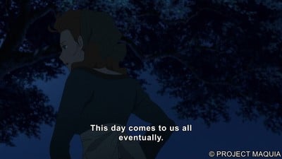 Em vez disso, ela é invocada como outro exemplo dos tipos de conexões que tornam a vida digna de ser vivida, por mais breve ou tênue que seja para nós. Essa Okada, ela sabe como conduzir um tema para casa. É um território muito espinhoso para construir uma história, mas é isso que torna as melhores obras de Okada ressonantes. E há momentos na história de Maquia que, como filha de uma família monoparental, foi atingida tão perto de casa que poderia ter quebrado minha janela.