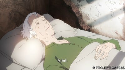 É também onde Maquia se aprofunda em uma visão muito menos romantizada da maternidade. Para Maquia, ser mãe é sem dúvida difícil, mas, em última análise, um meio de forjar identidade e propósito. Mas para Leilia, não é algo que ela pode escolher ou controlar-apenas uma ferramenta para promover os objetivos dos homens no poder. Fiquei impressionado com Leilia na parte em que ela ameaçou o aborto armado para proteger Maquia. Ela é uma pessoa obstinada presa em uma situação aparentemente inescapável que só pode lidar com isso atacando de maneiras momentâneas e desesperadas. Ainda assim, suas partes da história pareciam com sabor de pornografia de tragédia para mim, em comparação com os excessos confusos, mas mais calculados, da história de Maquia e Ariel.