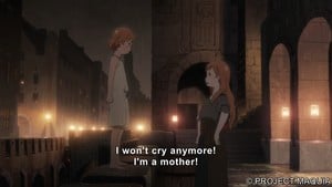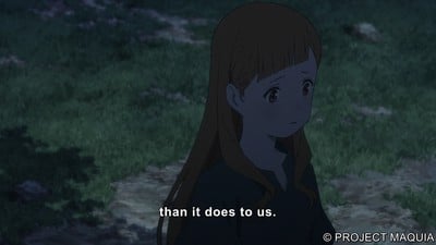 Embora ainda seja Mari Okada, então, quando Maquia se depara com uma criança órfã presa nas garras protetoras de sua mãe biológica morta, ela tem que arrancá-lo daquelas mãos frias e mortas.