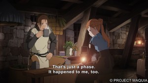 O o primeiro ato existe para prepará-lo para isso. Apesar de ser uma mãe recém-criada, sozinha em uma terra estranha e precisar esconder sua identidade, Maquia tem um tempo positivamente pastoral. Ela até consegue um Mentor Maternal para ensiná-la como ser mãe.