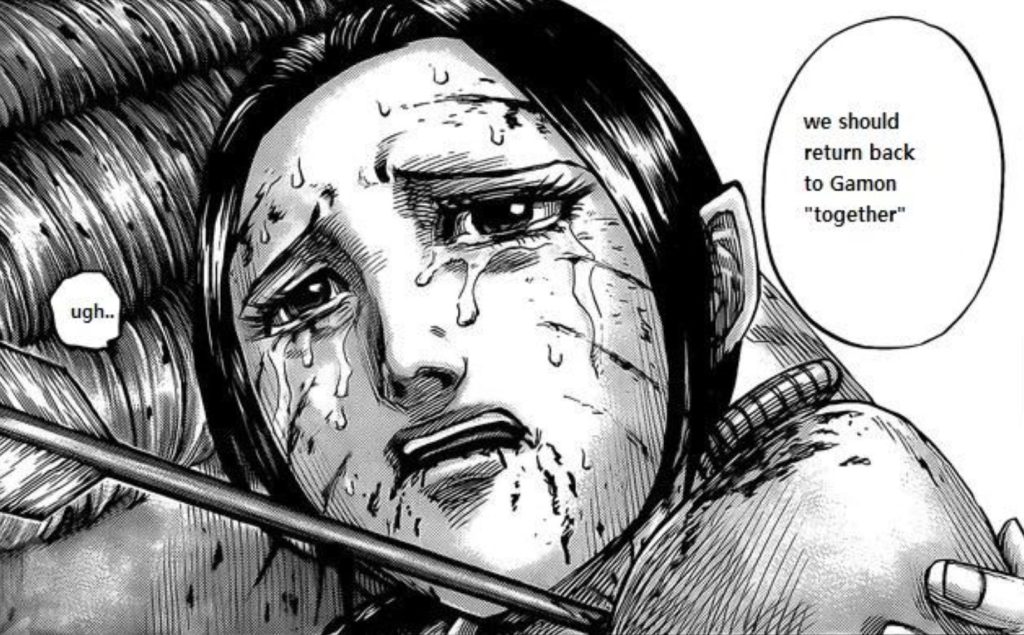 No início do Capítulo 743 do Reino, vemos que Riboku está tentando pegar Kaine depois que ela foi ferida. Mas ela pediu que ele não se concentrasse em coisas tão pequenas. Por trás, um dos soldados Kanki tentou dar um tiro certeiro. Mas Kaine interveio e salvou o comandante Zhao. Outros guerreiros viram isso e decidiram que era hora de salvar Riboku e tirá-lo de tudo isso.