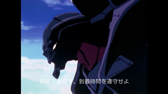 Começamos com uma abertura fria e sinistra, enquanto a Unidade 03 é transportada dos restos da base dos EUA para o Japão, um espectro sombrio à espreita entre as nuvens. As unidades Eva nunca foram exatamente reconfortantes; na verdade, nossa primeira imagem da Unidade 01 é um choque terrível, um monstro que nosso jovem Shinji deveria de alguma forma dobrar à sua vontade. A chegada de um robô gigante, especialmente um com um jovem piloto humano, tem sido tradicionalmente um momento imbuído de otimismo e entusiasmo, o momento em que a nossa orgulhosa tecnologia surge para se unir contra as forças caóticas do universo. Mas embora os anjos sejam certamente ameaçadores à sua maneira incognoscível, as unidades Eva são claramente monstros, criaturas com olhos frios e dentes cruéis e vontades próprias incertas.