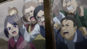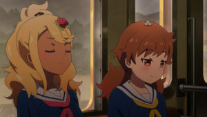 Esta semana foi uma melhoria para o Train, mas não muito. No início, o episódio foi um terror sólido. Os moradores locais tranquilos, comida de graça, insistências estranhas em coisas como sauna. Então as coisas começaram a piorar, olhares estranhos, figuras no escuro, comentários suspeitos ou comida. Até que finalmente tudo deu errado, os cogumelos começaram a brotar, as outras meninas começaram a sucumbir e a cidade se voltou contra elas. Tudo isso foi bom, ótimo até! O show ainda conseguiu manter um pouco de sua bobagem, com os melões amargos sendo a criptonita do povo cogumelo, rejeitando-os. Mas então Train recuou, incapaz de se comprometer com a vibração de terror zumbi. O pessoal dos cogumelos simplesmente… os deixou ir sem problemas, transformando-se em pessoas barulhentas e amargas, reclamando que vidas curtas e felizes são melhores do que vidas longas e de merda. Entendo a mensagem aqui, pessoas escolhendo a felicidade de curto prazo e tudo mais, mas como alguém que investiu e gostou da coisa de zumbi, isso parecia uma traição a tudo o que o episódio vinha construindo. Basta dizer que, embora tenha sido melhor, ainda não correspondeu ao que eu esperava. Talvez episódios futuros consigam, com as dicas sobre a cauda crescente de Akane. Teremos que esperar para ver.