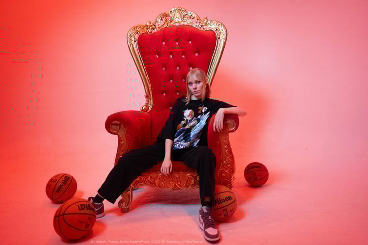 My Hero AcadeKaren 和 NBA 合作服裝將在 BoxLunch、精選 NBA 商店和在線商店發售。該系列還在紐約動漫展期間在紐約市的 NBA 旗艦店發售。