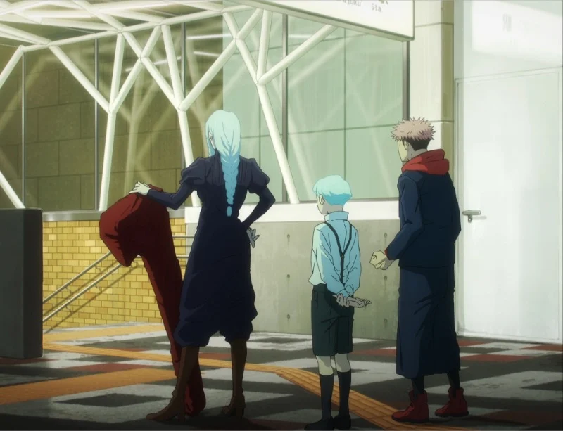小服裝元素在鏡頭中變化,例如在不同長度的角度和領帶之間關閉或打開的按鈕和領帶切割後。當場景在特寫鏡頭和廣角鏡頭之間切換時,Gojo 的眼罩織物有時會顯得更緊或更松。熊貓相對於附近道具的大小在不同鏡頭中也可能略有不同。這些是多剪輯對話中出現的經典動畫連續性怪癖。