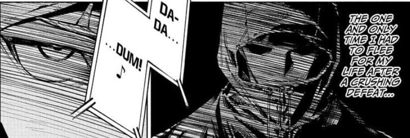還記得第六章嗎?我們有一個小面板,老詛咒使用者武田正樹在健身房裡被丸逼到了牆角。 He was thinking back to the only other time he felt that same overwhelming, terrifying pressure.面板顯示了負責該記憶的角色。