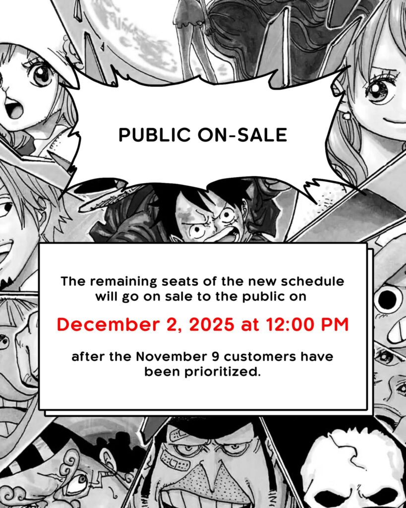 新時間表的剩餘座位將於 2025 年 12 月 2 日中午 12:00 向公眾發售,優先考慮 11 月 9 日的客人。