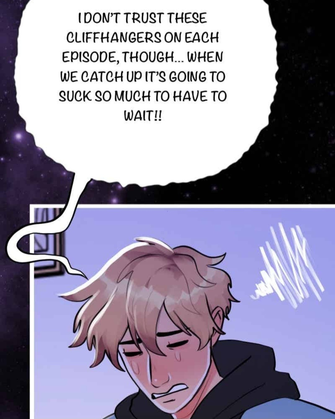 我不會讓評論來決定故事的進展,但如果他們喜歡我表現某些東西的方式,如果他們喜歡我處理它的方式,我會在稍後添加更多內容。他們真的很喜歡我處理心理健康的方式以及我畫它的方式。我會確保繼續下去,但當涉及到角色互動或某些情節點時,它就在我的腦海裡,我很欣賞大家的反饋,但這是我的故事。