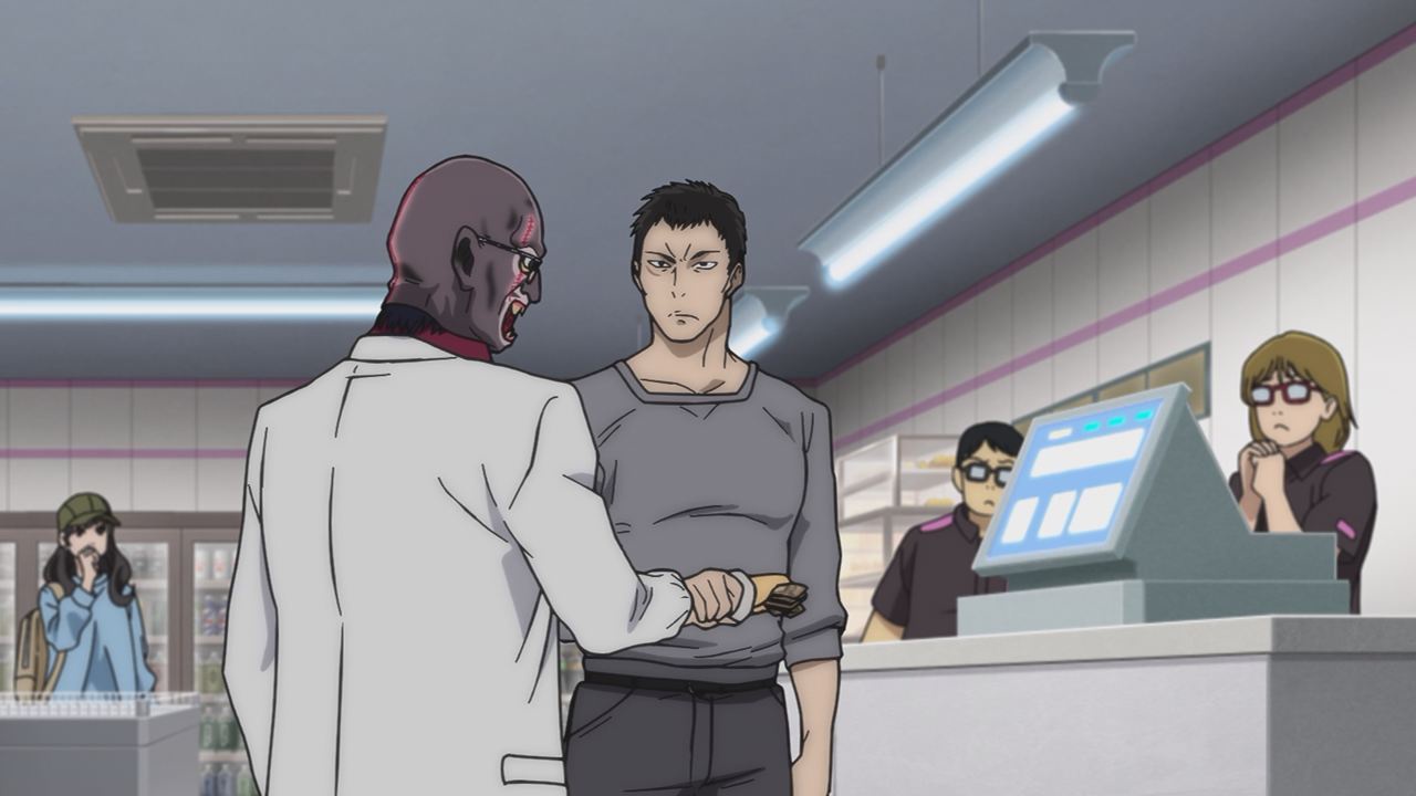 Die drei Handlanger sind immer noch da, aber jetzt Ihr Chef Hachirou Nakao hat mitgemacht, als er einen Polizisten geschlagen hat.