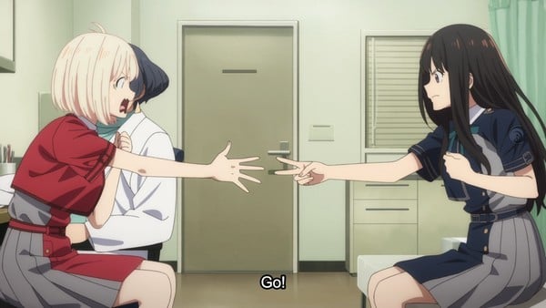Lycoris Recoil meint: „Wäre es nicht vermasselt, wenn all diese Schulmädchen Attentäter wären?“ in einem Regierungsprogramm?“ Die Einbildung, die wir zuvor erwähnt haben, verleiht ihm eine lustige City-Hunter-Atmosphäre (anscheinend absichtlich). Chisato ist diese wundervolle Kanone, die alles tut, um den Leuten zu helfen, aber wenn es soweit ist… Du willst ihr nicht im Weg stehen. Es entsteht ein überzeugender Kontrast, wenn sie den Bildschirm mit Takina teilt, die an das Attentäterprogramm so gewöhnt ist und noch nie wirklich in der Welt gewesen ist. Ganz zu schweigen von den Auseinandersetzungen, die sich aus Chisatos Engagement für die Rettung von Leben ergeben.