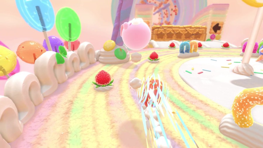 Kirbys vertraute Kopierfunktion erscheint in neuer Form! Wenn Kirby sogenanntes Copy Food isst, verwandelt er sich in ein Bonbon, mit dem umliegende Erdbeeren gefressen oder Gegner mit einer Schockwelle weggepustet werden können und bei richtiger Anwendung sogar die Situation sofort umkehren können.