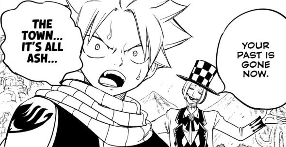 Brian “invita” a Natsu a ir con él. Natsu está de acuerdo pero quiere quedarse con el resto de su equipo. Brian dice que no hay necesidad ya que Natsu ve toda la ciudad reducida a cenizas.