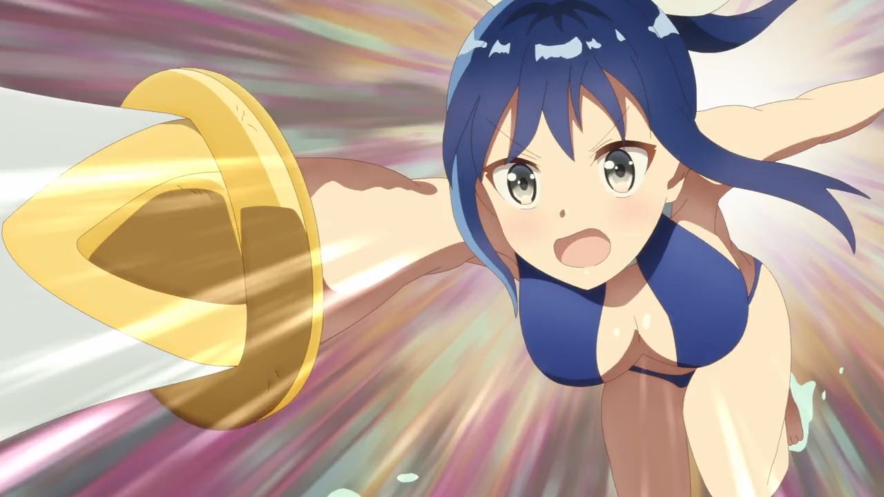 Entonces, mientras Iris y Kate recolectan almejas, aquí está Sarasa Feed, donde le enseña a Lorea a nadar. Sarasa incluso trajo una tabla mágica para que Lorea pueda flotar en el agua hasta que pueda nadar sola.