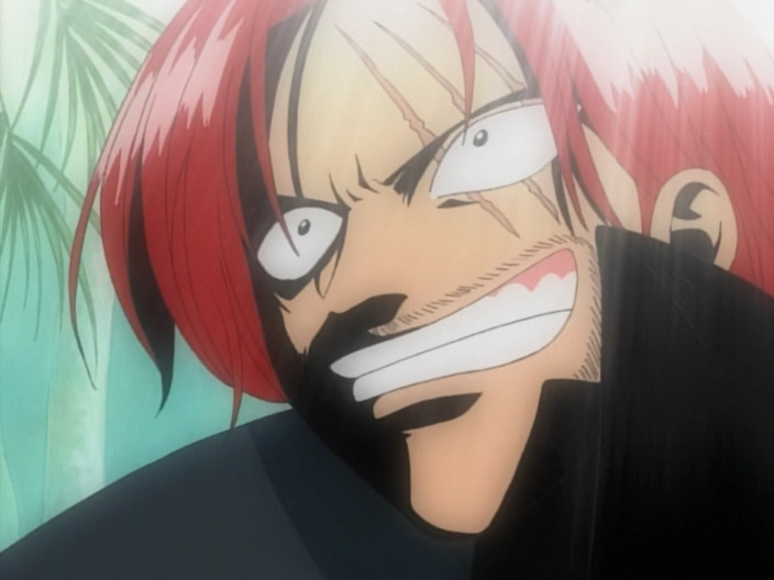 Para darle una respuesta adecuada a esta pregunta, tenemos que explorar un poco la historia de fondo de Shanks. Como un joven pirata, Shanks se alista en los Piratas de Roger bajo el mando del Capitán Roger y su primer oficial Rayleigh, aquí ya con su sombrero de paja. Shanks discute regularmente con su compañero de barco Buggy, por ejemplo, un día si hace más calor en el Polo Norte o en el Sur. Rayleigh resuelve la disputa con un cabezazo y dice que los dos deberían ir allí si ya deberían saberlo. Poco después, otro barco pirata aparece a la vista.