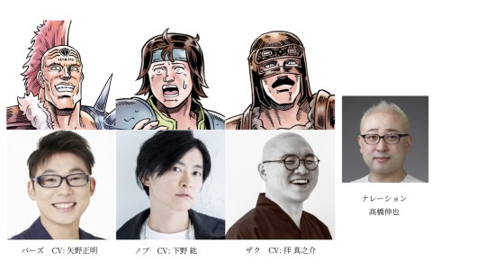Fist of the North Star gag-spinoff-lyhytanimesarjan Hokuto no Ken: Ken’o-gun Zako-tachi no Banka virallinen Twitter/X-tili on julkistanut tärkeimmät ääninäyttelijät. Animen on määrä saada ensi-ilta Japanissa tammikuussa 2026.