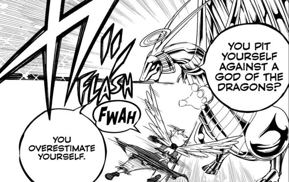 No, taistelu Viernesiä vastaan ei mennyt aivan kuten ajattelin Fairy Tail:ssa 100 luvussa 5 vuotta. En saanut hetkeä, jolloin Viernes kysyi, onko hänen vuoronsa. Saimme kuitenkin jotain vastaavaa. Viernes ilmaisi vain ärsyyntymisensä Natsua kohtaan sen sijaan, että olisi ylimielinen. Silti Viernes pudotti ydinaseita tehokkaasti maahan ja taivaalle, mikä olisi seurannut”onko minun vuoroni”-huomautusta.