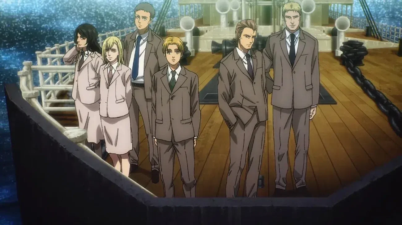 Lorsque le Survey Corps atteint enfin la mer, Armin considère cette étape comme plus qu’un symbolisme : il échantillonne la salinité de l’eau, étudie les courants et note les limites de navigation des bateaux standards et de la portée des dirigeables. Ces observations éclairent la planification logistique ultérieure des mouvements transcontinentaux et des opérations côtières.