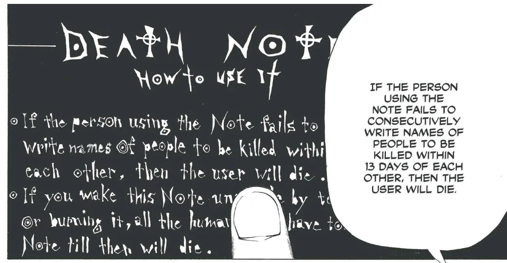 Après la Le cahier révèle une règle affirmant que l’utilisateur meurt s’il s’abstient d’écrire un nom pendant 13 jours, le groupe de travail refuse un test définitif et contrôlé. Cette décision oblige L à relâcher ses soupçons sur Light et Misa malgré des contradictions non résolues. La règle non testée devient un bouclier qui affecte la garde, l’intensité de la surveillance et qui peut accéder au carnet. Ce n’est que beaucoup plus tard que la règle est exposée comme une fabrication plantée.