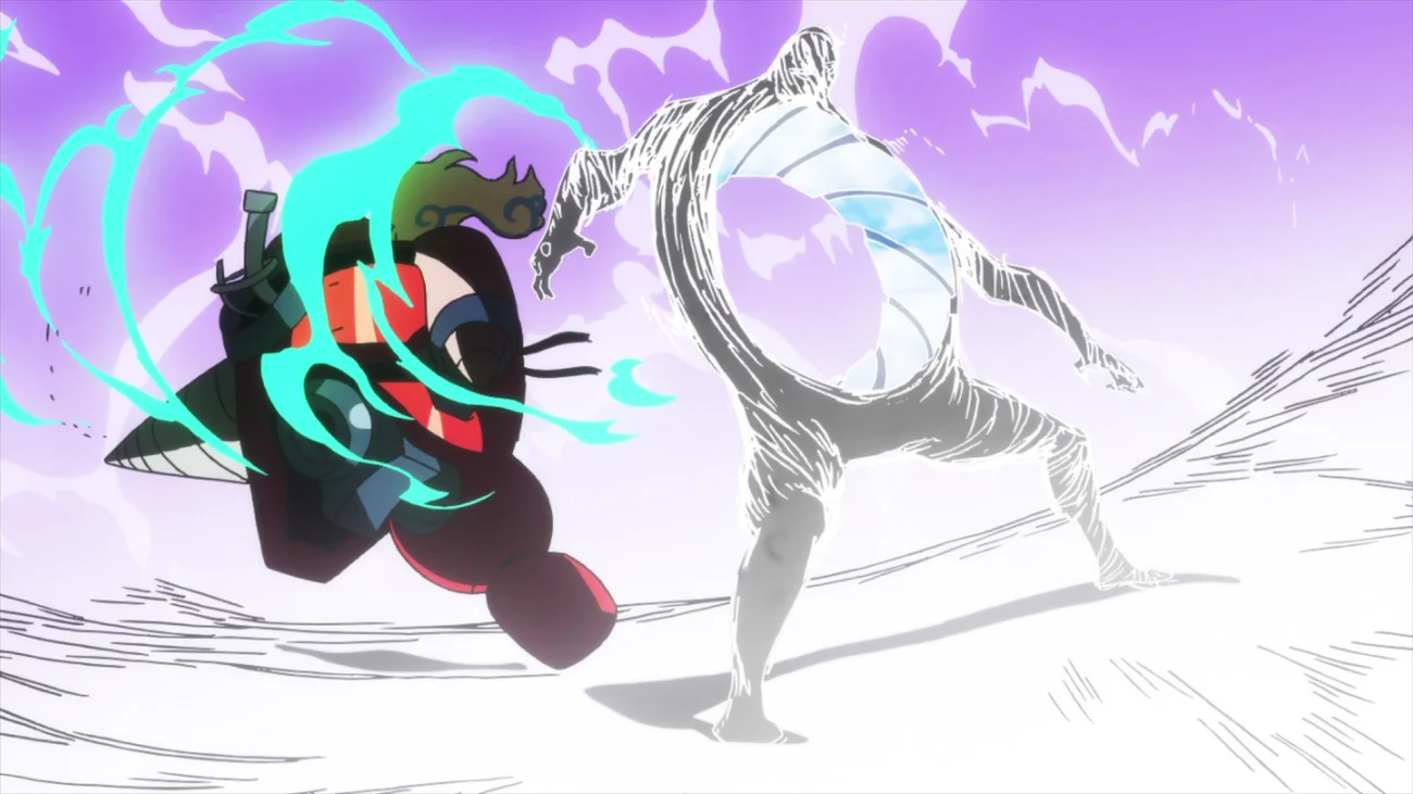Les stands de la finale de la saison Saitama contre un conquérant extraterrestre dont les capacités de régénération prolongent la résolution habituellement brève. Madhouse a mis en scène de longs plans grand angle de la rentrée atmosphérique, de la destruction de la coque extérieure et des ondes de choc à l’échelle de la ville pour établir la portée. Le combat démontre les niveaux de force de Saitama – des mouvements « sérieux » – après une saison de victoires comiques en un seul coup. Ses coupes mettent en évidence les traînées de mouvement et l’animation d’arrière-plan qui sont devenues largement coupées dans les bandes-annonces officielles et les récapitulations des fans.
