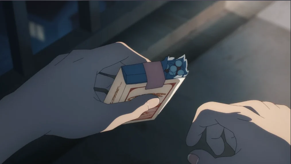 Sur un balcon calme, Himeno offre une cigarette à Aki comme un gage de survie future – un échange qui fixe des règles pour qui sauve qui. Le geste est petit, mais la pause et le cadrage soulignent un pacte construit sur des options limitées. Leur conversation met en avant le coût professionnel de la lutte contre les démons, et non la bravade. Il préfigure les enjeux ultérieurs en les ancrant dans le rituel quotidien plutôt que dans la violence.