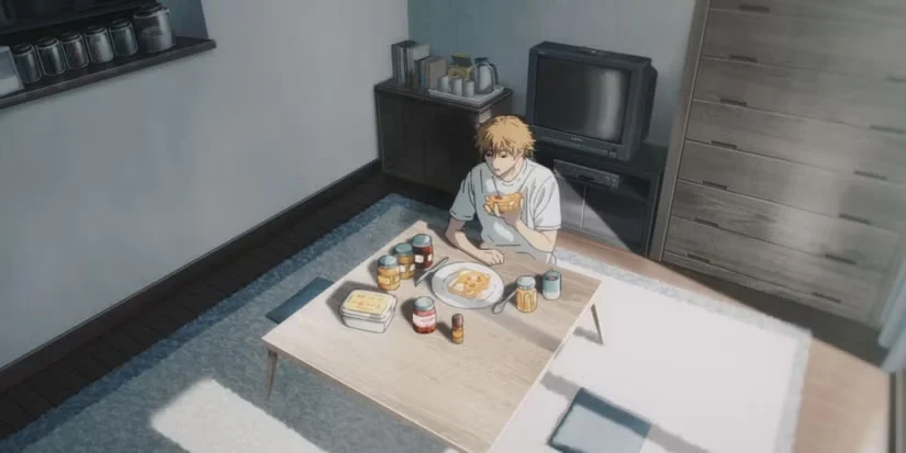 Aki, Power et Denji partagent une matinée de café, les toasts et les corvées, le tout marqué par le ton doux de la pièce et les plats tintés. L’accent mis par Denji sur la confiture et le confort simple recadre les objectifs de la série de l’héroïsme à la routine. Les plans nationaux – lignes de blanchisserie, listes d’épicerie – se lisent comme un fragile modèle de stabilité. Le calme semble précaire précisément parce que la série a appris aux téléspectateurs à quelle vitesse elle peut disparaître.